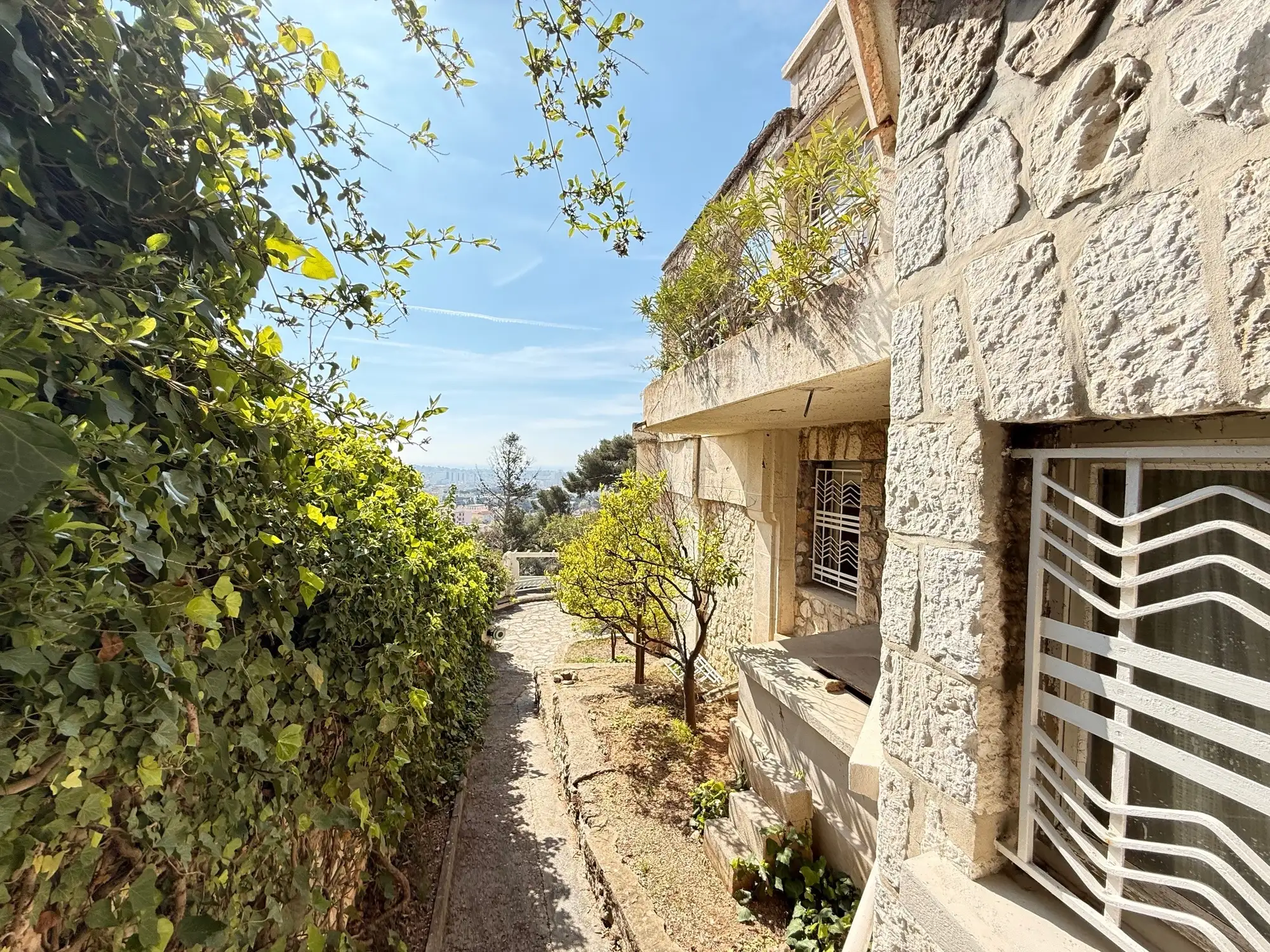 Construite sur les pentes du Faron avec une jolie vue dégagée, elle bénéficie d'une bonne exposition (SUD-EST), de deux accès avec vaste garage, dans un quartier calme et résidentiel.